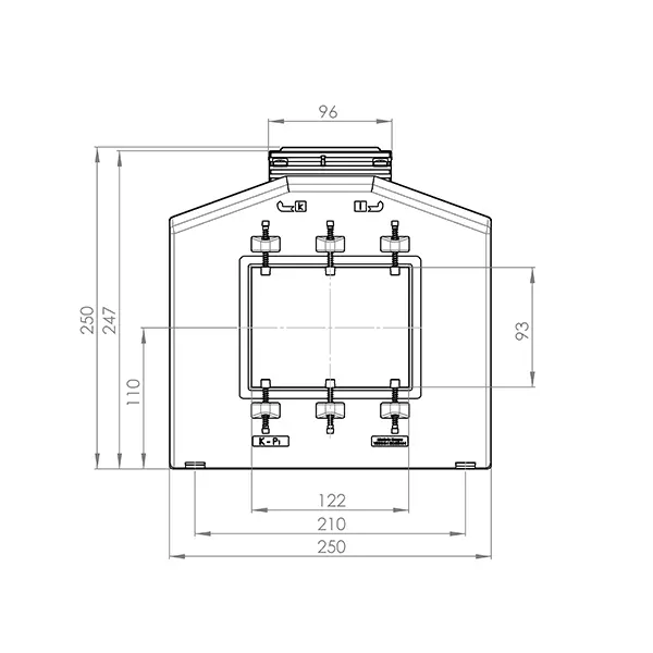 Primary conductor opening: 122 x 93 mm